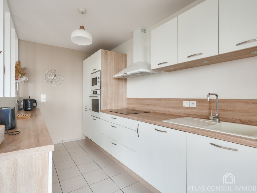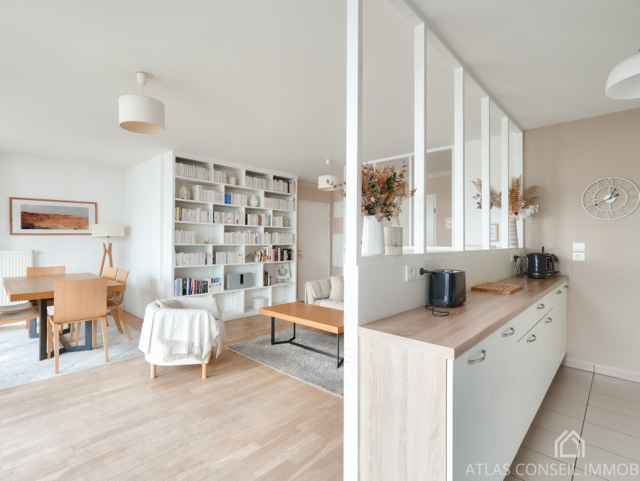 Il se compose d'une cuisine semi-ouverte et équipée donnant sur un séjour de 22 m² avec accès à une terrasse de 13 m². La partie nuit est composé de trois chambres avec placards dont un dressing le tout complété par un balcon filant de 7 m², une salle de bains avec WC et un WC séparé,